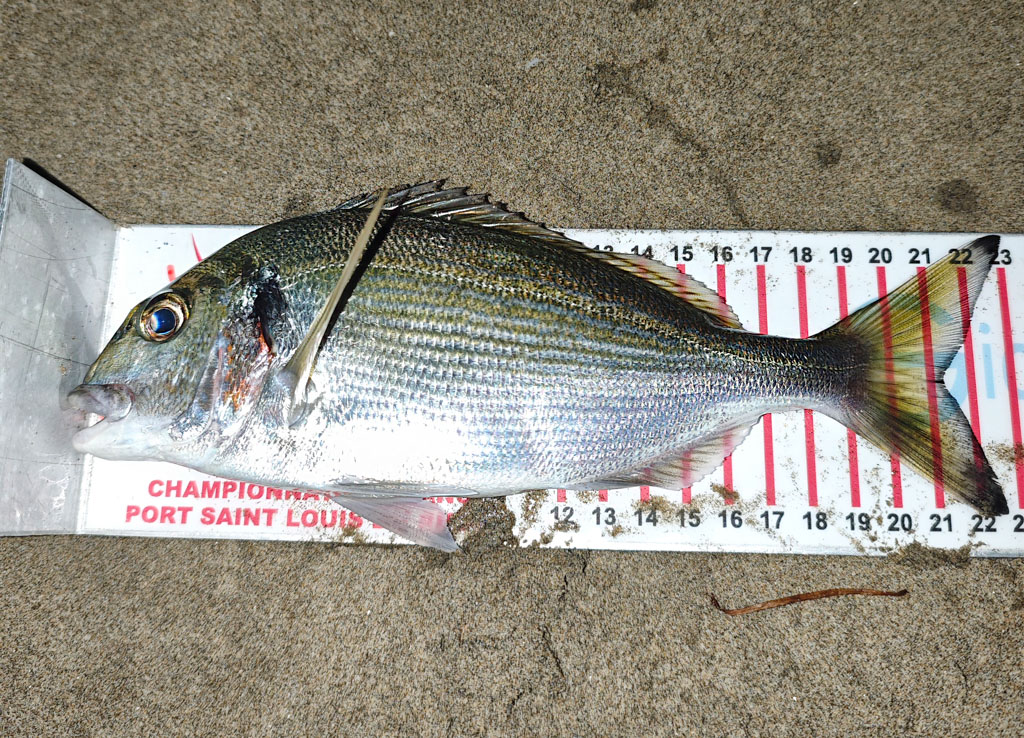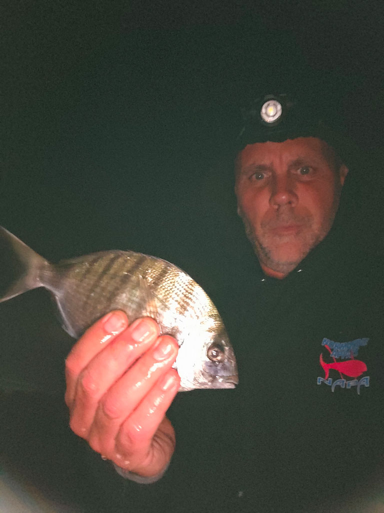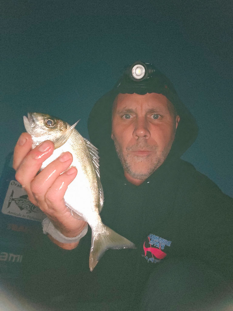 Commencé à 19.00 h, ce concours amical a été particulièrement productif en termes de prises. Walter a ainsi pêché de très nombreux poissons – dont beaucoup de sparidés. Il commence ainsi avec une daurade royale de 23 cm pris à l’Américain. À la grande surprise du membre du team Normandie Appâts, il a également pris de très nombreux bars juvéniles de 10 à 15 cm à peine. Il en a ainsi pêché plus d’une dizaine qui ont été aussitôt relâchés avec soin. Au-delà du seul respect de la réglementation, c’est avant tout le respect de la ressource que tous pêcheurs devraient avoir !