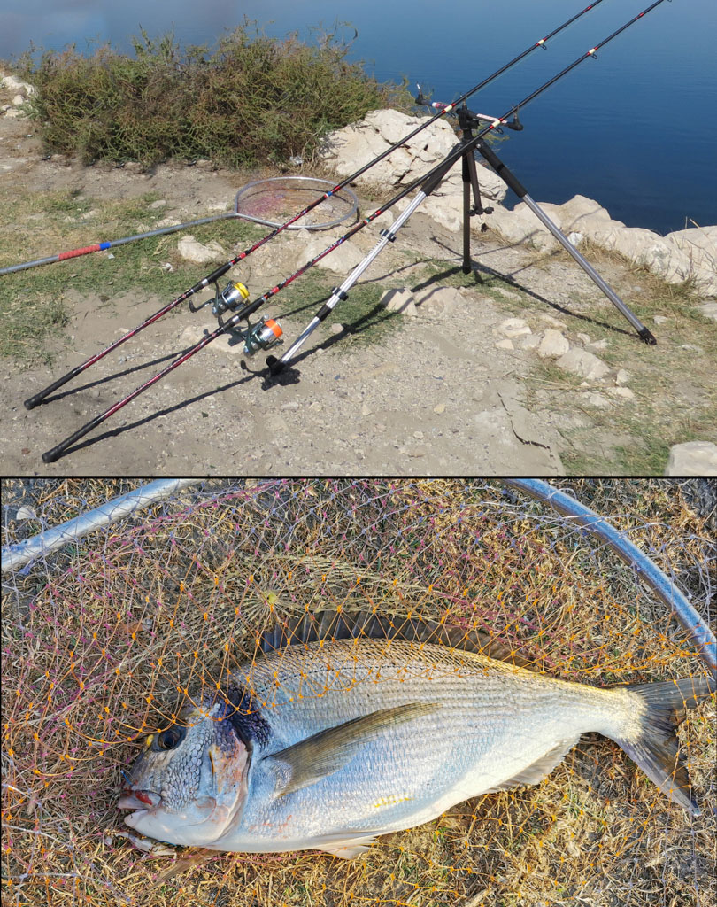 Cette épuisette bateau avec un large panier a permis de sécuriser la prise de ce beau pagre !