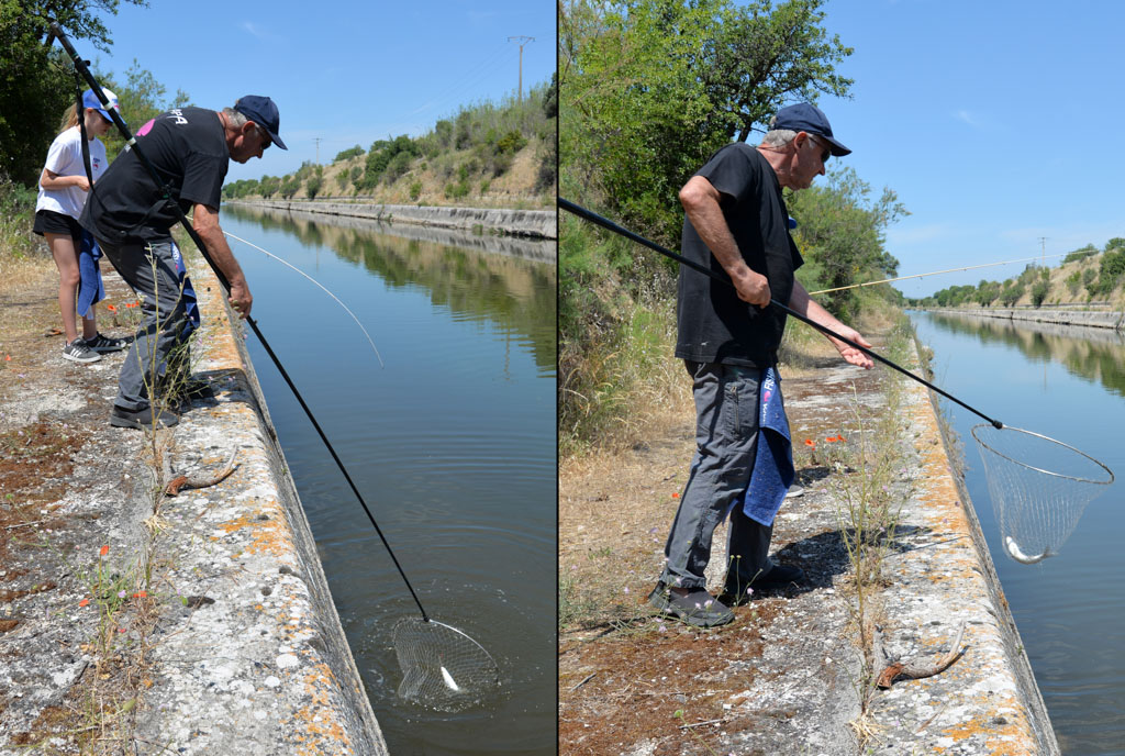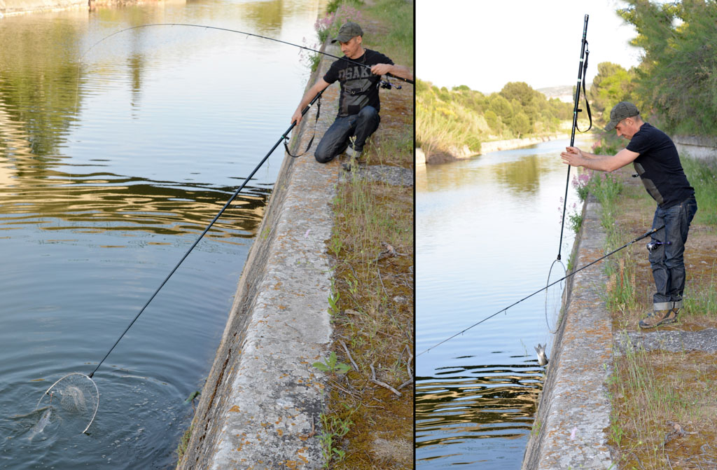 Comme nous le montre Daniel, une longue épuisette est indispensable quand on pêche en surplomb d’un quai haut