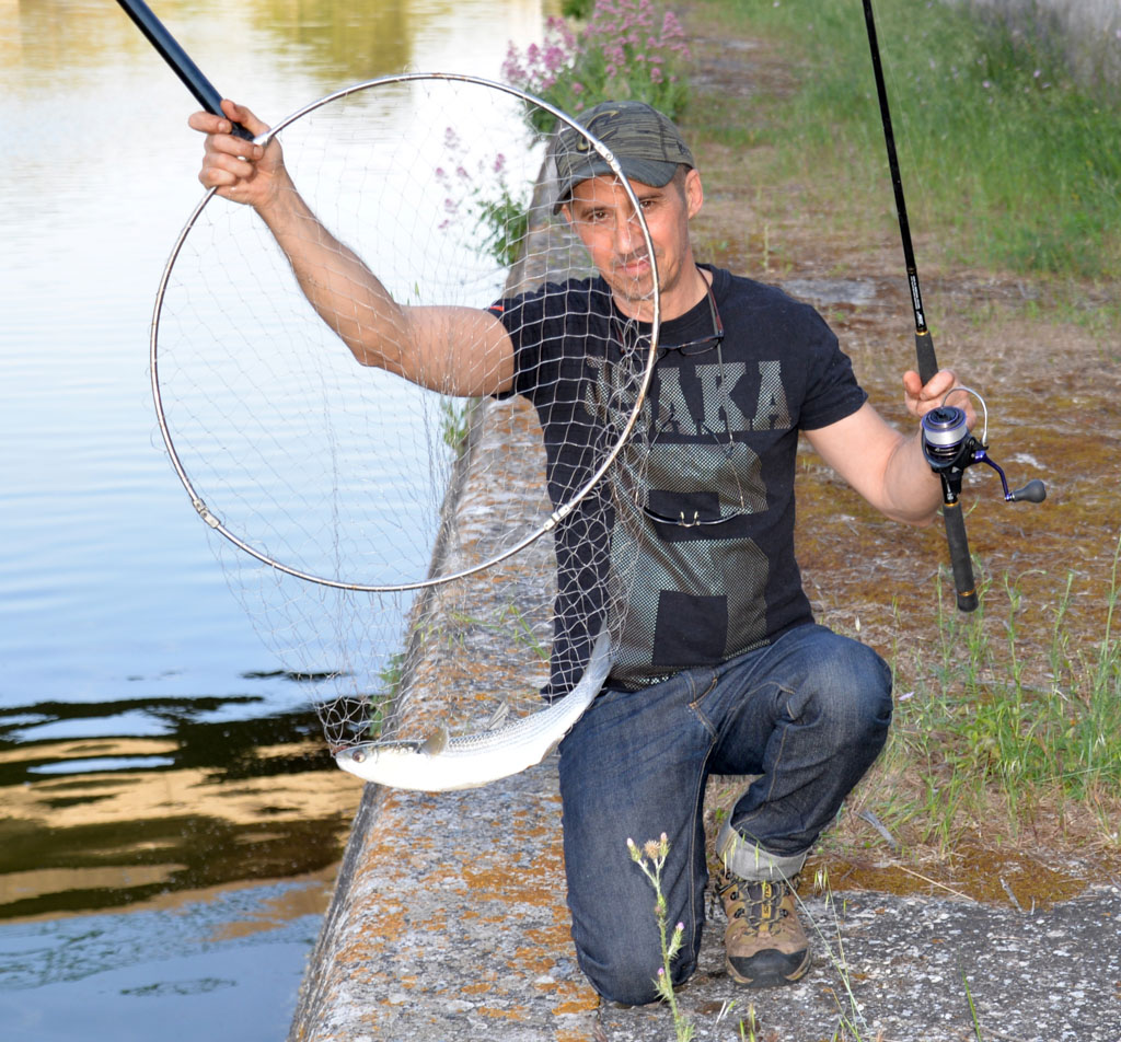 Maurice n’aurait certainement pas pu sortir de l’eau cet énorme chapon de plus de 3 kg sans une épuisette suffisamment longue et large !