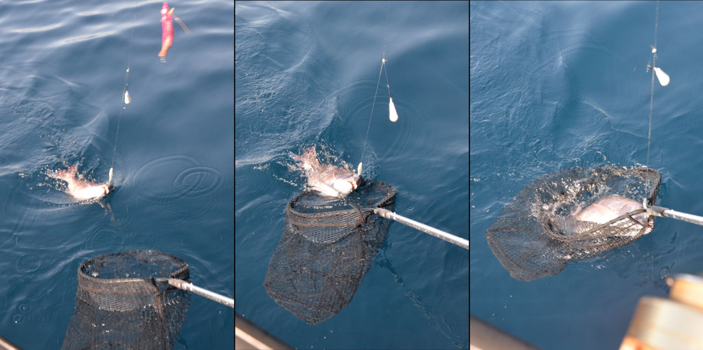 Une bonne épuisette est indispensable quand on veut sortir un gros poisson tel que ce beau pagre !