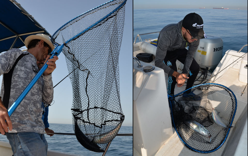 Cette large épuisette a permis la prise d’un coup des 2 bonites pêchées par ce pêcheur et son ami