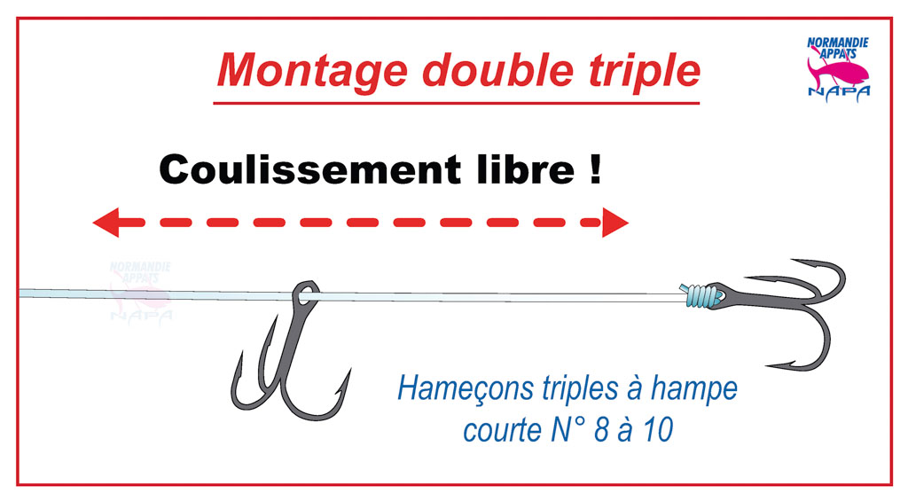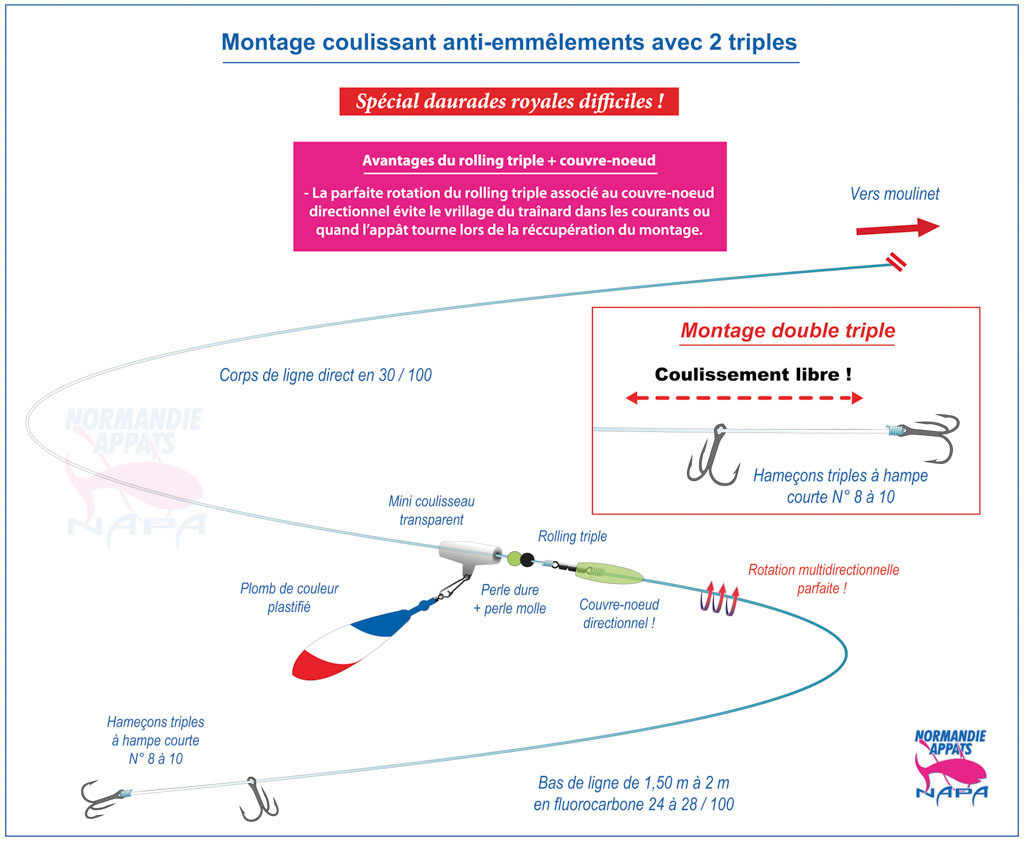 Montage coulissant anti-emmêlements avec deux triples spécial daurades royales difficiles de Walter Sarret