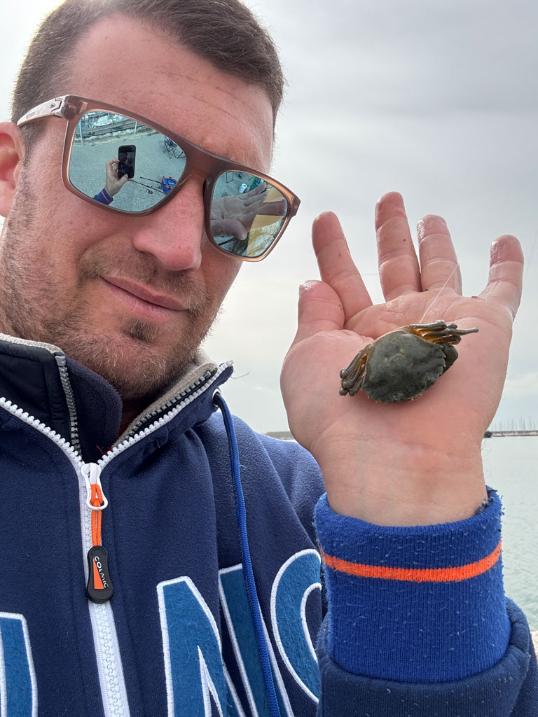 Première daurade royale de Mathieu Courtin prise avec un petit crabe vert