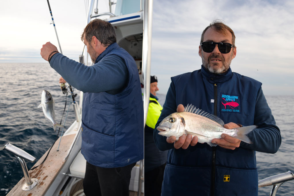 Lionel n’est pas en reste et il multiplie les prises très rapidement. Les daurades ont mordu tard mais elles sont désormais bien là !