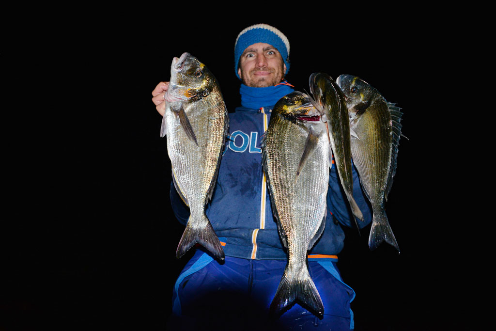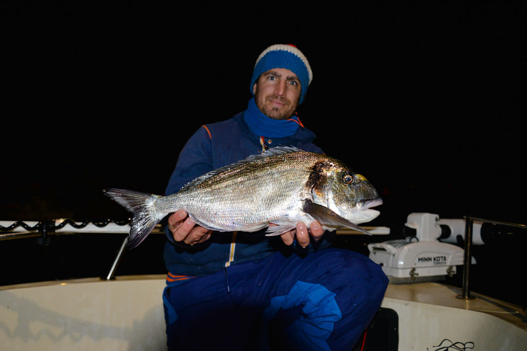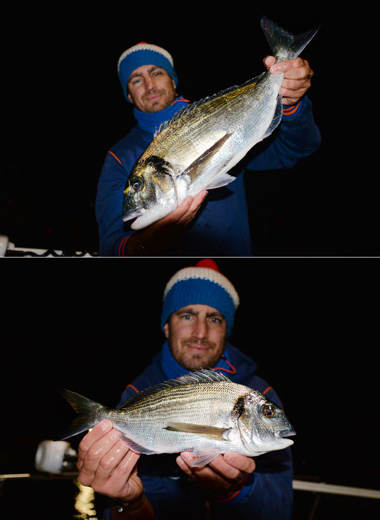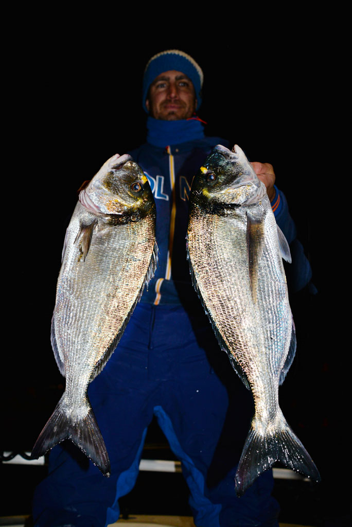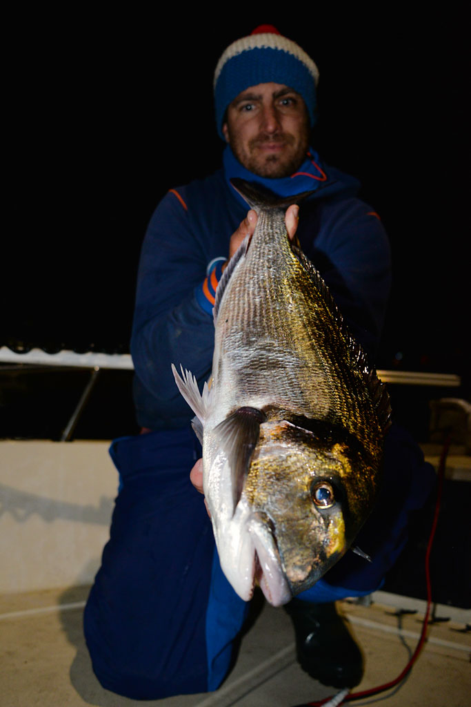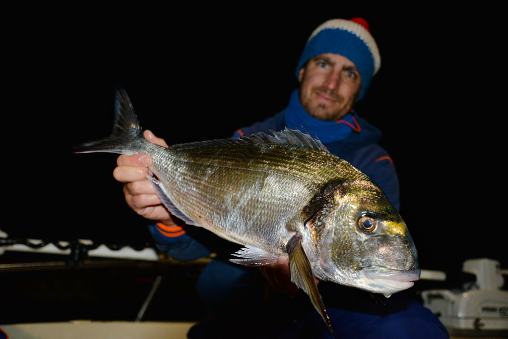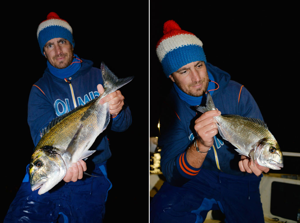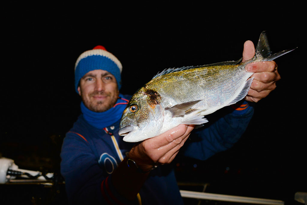 Heureusement, les daurades ne font pas les difficiles et il est fréquent que les touches soient si violentes qu’elle se ferrent elles-mêmes ! Les plus belles daurades dépassent les 2 kilos et la plupart des poissons que Mathieu remonte font plus du kilo.