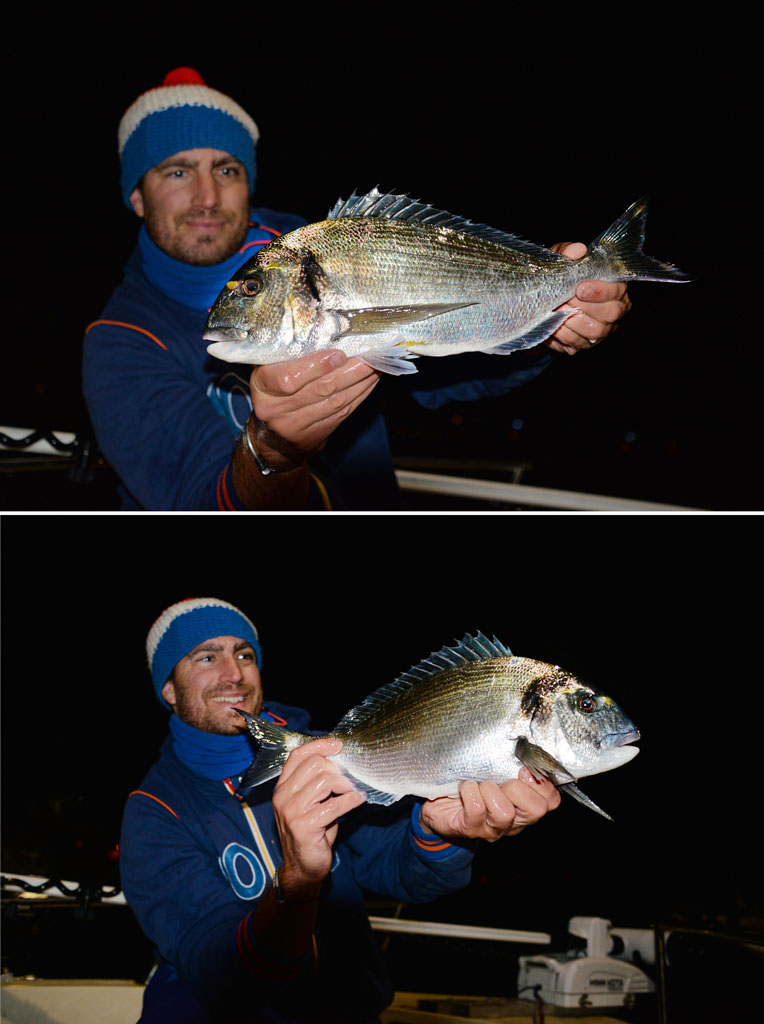 Durant plus de deux heures, Mathieu enchaîne les grosses daurades royales. Puis, comme si elles avaient reçu un signal, leur activité alimentaire cesse brutalement. Habitué grâce à la compétition à parfaitement gérer son temps entre eschage et action de pêche sans se précipiter, il a ainsi réussi à prendre plus d’une vingtaine de daurades royales. Sachez que Mathieu a libéré une dizaine de poissons de moins de 30 / 35 cm – soit bien plus que la taille réglementaire. Un exemple que tous les pêcheurs sportifs devraient suivre !