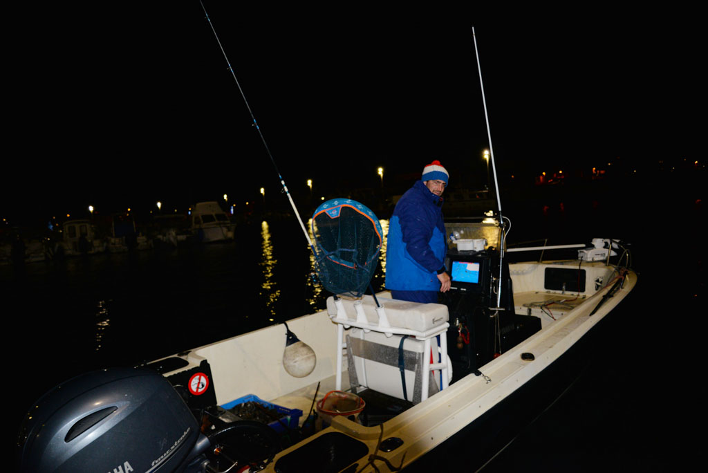 En ce mois de décembre, le soleil se couche très tôt et les poissons ont commencé à manger vers 16.30 h. Mathieu continue donc de pêcher mais la nuit l’oblige à utiliser sa frontale pour escher son montage et distinguer les touches sur son scion.
